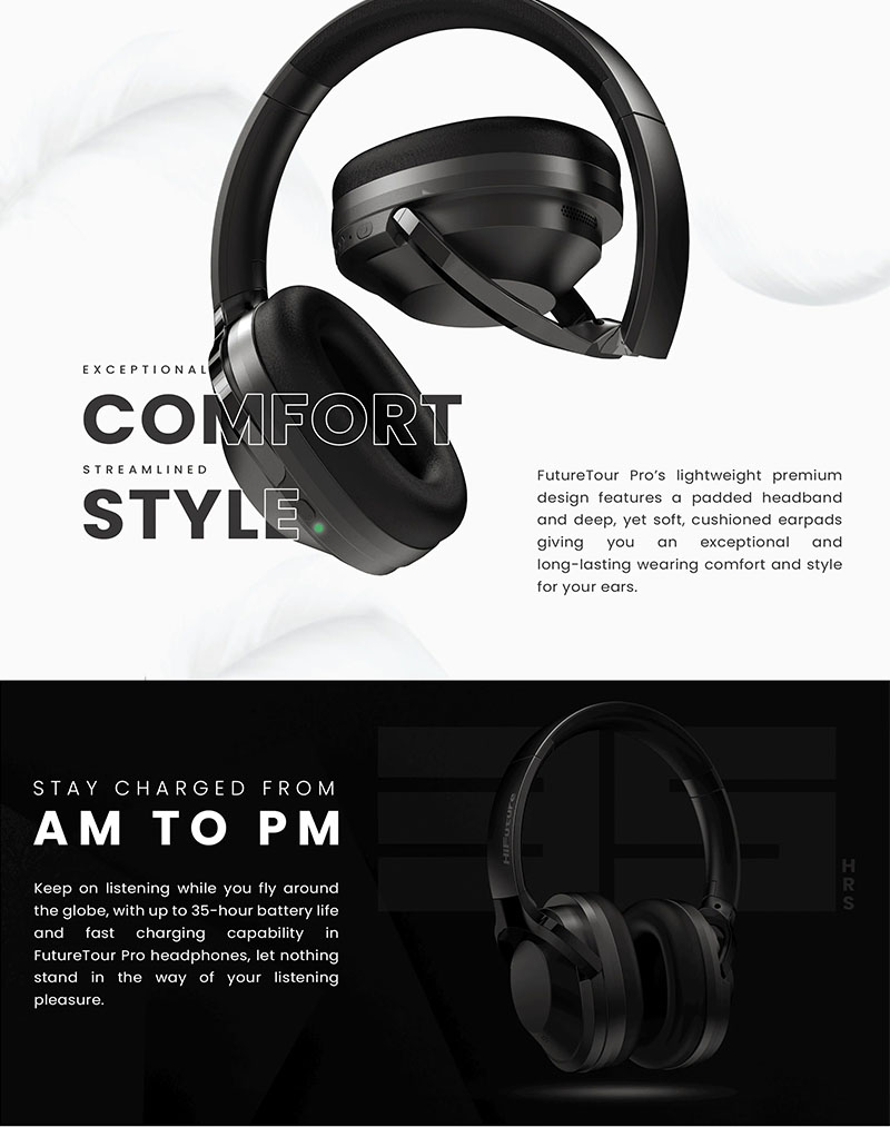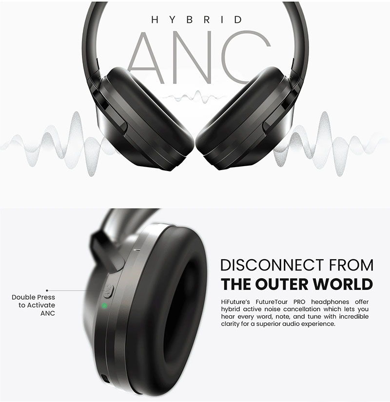 HiFuture Future Tour Pro Auriculares Híbridos Con Cancelación Activa de Ruido- Negro