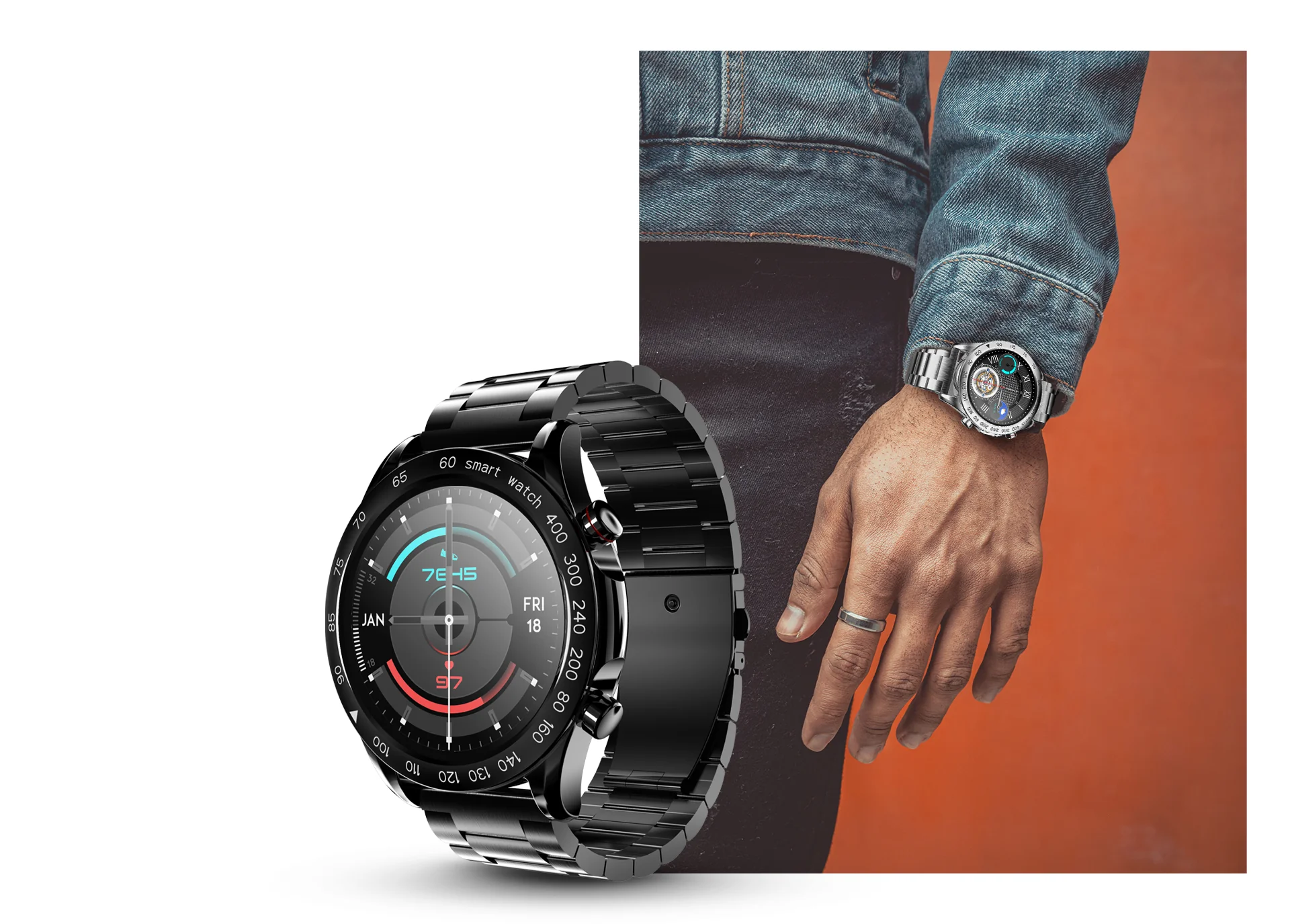 HiFuture FutureGo Pro Stainless-Steel Reloj Inteligente con llamadas Bluetooth (Negro/Plata)